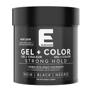 Strong hold gel formula plus instant black hair touch up for white / gray hair. The perfect solution to cover gray hair while adding a strong hold hair gel instantly. Style your hair and cover white/grey hair at the same time. This styling gel not only finishes shaping your hair, it assists in concealing the undesirable grey/white hair. Style hair first and depending on the length and thickness of your hair apply the tinted gel to gingerly to cover the dry grey/white hairs. The black tint and subtle styling gel will last for the entire day, although excessive sweating activities should be avoided. The hold and tint are temporary and can be used occasionally or on daily basis. Elegance Plus Styling Black Gel is designed for both hold and a fast, daily solution for grey/white coverage.