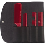 The JRL Barber Comb Set in signature red includes five professional-grade cutting and blending combs, each designed with patented fine flute teeth, ceramic anti-static technology, and high heat resistance. Whether you're sectioning, cutting, blending, or finishing, this set covers every need — and keeps your tools protected in a recycled leather storage bag.