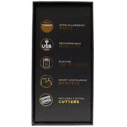 Italian designed and engineered with ultra-thin, hypo-allergenic gold titanium foils and staggered, independently floating cutters. This advanced design gives a closer, smoother shave, keeping the most sensitive skin free of razor bumps, ingrown hairs or skin irritation.