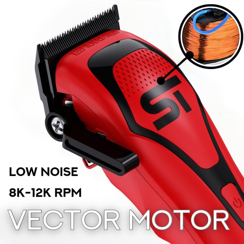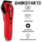 DarkStar72 Hair Clipper, designed for precision and high performance. With a powerful vector motor reaching 12,000 RPM, it effortlessly cuts through thick hair for a smooth trim.