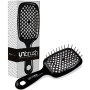 UNbrush - Moonlight Gray gently yet thoroughly extracts knots and tangles from even the most unruly hair, painlessly and effortlessly. Unique vented cushion reduces blowdry time by 48%! Prevents hair from catching. Works equally great on wet or dry hair.