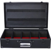 The Mastercase that is perfect for the barber, cosmetologist, nail stylist, and hair stylist. Features 5 compartment that are lined in red fabric. A removable insert tray with an additional 5 compartment. Elastic belts on the lid to secure smaller items like combs, razor, brushes etc. Available in: gold, black, red, silver, pink, and bronze.