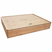 • Removable bamboo compartment with 2 hook latches: 6 tall pockets, 12 short pockets, foam padded lid for security