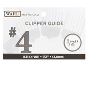 The #4 Cutting Guide comes in Black (3144-001) and measures at a cutting length of 1/2”. The Wahl Professional Cutting Guides fit all full-size Wahl Professional blades excluding the Competition Series and 5-in-1 Magic Blades.