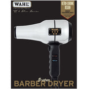 Get the dryer that’s built pro from the ground up: the Wahl Barber Dryer. Everything from a whisper to whirlwind is at your fingertips with two speeds and three heat settings, plus two air-concentrating nozzles for pin-point accurate airflow and direction. Count on enough power to dry even the thickest hair quickly and blow away every stray clipping from the hair and neck. Or dial it down to precision sculpt every cowlick and curl with flawless finesse. It’s also engineered with ionic technology and a tourmaline grill—big words that give you even bigger hair-harnessing power. Then, set down your style with the “cool shot” button that locks in the look. Add in a long, tangle-free, nine-foot power cord and wrap it in classically retro chrome, and you have the ultimate professional hair dryer. It’s real equipment for real barbers.