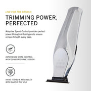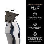 The Hi-Viz Trimmer was designed for those who live in the details. Built with a slim neck, where the body meets the blade, allows for more visibility and control with every cut. The re-designed wide T-blade is manufactured with diamond-like carbon (DLC) coatings that stay cool and remain sharp eight times longer than stainless steel blades (as shown in lab testing). With zero-gap capabilities, get skin close results and high-end results with every cut. The innovative Adaptive Speed Control automatically adjusts the motor to cut through all hair thicknesses and textures in a single hit. With over two years of intensive engineering, hand tested and assembled with care in the USA, the Hi-Viz is more than a tool – it’s an embodiment of your passion.