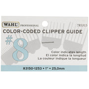 The #8 Cutting Guide comes in Light Blue (3150-1253) and measures at a cutting length of 1”. The Wahl Professional Cutting Guides fit all full-size Wahl Professional blades excluding the Competition Series and 5-in-1 Magic Blades.
