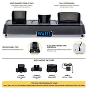 Charges all 5V Wahl Professional cordless tools, including: Cordless Senior, Cordless Magic Clip, Cordless Gold Magic Clip, Cordless Legend, Cordless Designer, Cordless Sterling 4, Cordless Metal Edition Senior, Cordless Detailer Li, Cordless Vanish, and future cordless tools.