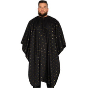 The Barber Cape 24K Gold collection is available in two colors with the famous Barber Strong shield in gold or the classic pinstripe. The Barber Cape is engineered with water resistant, static-reducing carbon fiber material to help repel hair.
