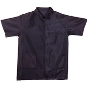 Our Route 66 Barber Jacket was created with your busy barbershop in mind! This classic black barber jacket has convenient front zipper closure, two pockets equipped with base zippers for easy cleaning and a zippered chest pocket. Made from a water resistant and bleach proof polyester material to keep your clothes protected, Route 66 also reduces and helps prevent static electricity. After a day in the shop, this jacket can be tossed into the washing machine for easy care.