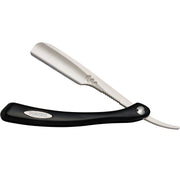 EXPERIENCE THE POWER PLUS OF THE NEWEST FEATHER FOLDING SHAVING RAZOR! Now, shaving thick facial hair leaving a soft feel on the skin is made easy with the powerful new Feather Artist Club SR Folding Razor. These superior results have everything to do with the heavier-yet-smooth weight of the razor, which alone is enough to handle thick beard shaving (less pressure needed). The tip of the razor is both rounded and thickened to enhance that soft feel. Add to that excellent no-slip grip and hold plus ideal balance between blade and handle — and you have finally met the challenge of this once tough shaving scenario. The raised handle features super-engineered polysulfone resin for heat, hydrolysis and chemical resistance. The concave shape of the spring-mounted SR head offers a comfortable shape and soft feel; sandblasted stainless steel means smooth gliding across the skin. This ultimate replaceable blade shaving razor uses any of the 5 different available blades. The folding handle comes in black, blue and pink. Handle and blades are made in Japan.