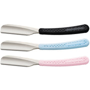 POWER UP WITH ‘SR STRAIGHT’ FOR SHAVING THICK FACIAL HAIR! It’s the best of both worlds made easy — for shaving thick facial hair and leaving soft skin results. The new Feather Artist Club SR Straight Razor is the powerful solution to this once tough shaving experience because it is heavy-yet-smooth on the skin, with less pressure needed to shave a thick beard. Raised by 10 degrees at the end, the silicone resin handle makes a difference for better holding and balance, along with anti-slip notches for superior grip no matter where you hold this beautifully designed straight handle. Look for attention to quality detail, like the boundary between metal and handle for a gentle finish to create stability when shaving. Consider the concave shape of the sandblasted steel head which offers a comfortable shape and a soft feel to the skin. The tip of the razor is rounded and thickened to enhance the soft, smooth feel of the skin. The ultimate replaceable blade shaving razor uses any of the 5 different available blades. The handle comes in black, blue and pink; handle and blades are made in Japan.