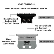 Gamma+ X-Pro Wide Stainless Steel with Black Diamond Carbon DLC The One Cutting Trimmer Blade Set #GP528SB