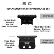 Stylecraft Replacement Fixed Black Diamond X-Pro Wide Fixed Trimmer Blade with Black DLC Cutter Blade #SC536B