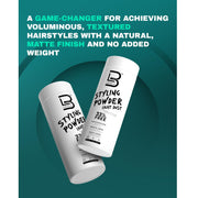 Introducing our light hold styling powder - the ultimate solution for creating perfect hairstyles with added volume and a matte finish. Experience the game-changing power of this texturizing and volumizing powder for men and women alike!