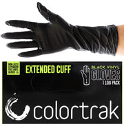 Stay protected with Colortrak's black disposable gloves, now designed with an extended cuff for extra coverage against chemicals and mess. These non-latex, powder-free, and odor-free gloves provide a comfortable, clean experience while maintaining the highest hygiene standards. Perfect for all chemical processes, they’re ambidextrous, single-use, and come in a convenient dispenser box. Available in small, medium, and large to fit your needs.