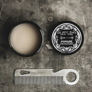 This water based hair pomade is formulated to hold even the thickest hair all day long.Restyle with a wet comb and wash out with regular shampoo. Comes in a 4oz amber jar. Lightly fragranced with our signature Gunpowder Spice.