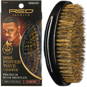 Red Premium Bow Wow X 360 Power Wave Boar Palm Brush Medium Soft Bristles #BR14