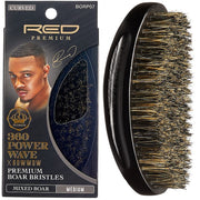 Red Premium Bow Wow X 360 Power Wave Mixed Boar Palm Brush Medium Bristles #BR20