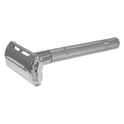 Stainless steel double edge razor with closed comb for safety, allows for a smooth, close shave.