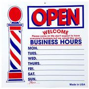 • 16" x 16" Double sided Open / Closed Sign displays your hours clearly.