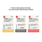 • Use any of the 3 Feather Styling Razor Blades to tailor your haircutting needs (Standard, R-Type, Texturizing)