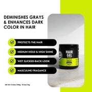 Introducing Rolda Cosmetics—the brand for men who want the best looking & smelling hair. The Black Hair Styling Gel instantly covers greys without any tints or dyes. This unique & innovative product is perfect for anyone who wants to achieve a wet, slicked-back look with all day hold & a masculine fragrance without leaving your hair dry, greasy, or flakey. The black gel by Rolda Cosmetics uses activated black charcoal as an active ingredient to protect your hair from daily contaminants & help cover greys while providing a medium strong hold & medium shine. Its masculine scent will keep you smellling & feeling refreshed. As always Made for Men, Approved by Barbers.