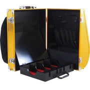 The hard shell backpack combines the style of our master case with the convenience of a backpack. This backpack is designed to show style and function. With the backpack opened vertically on any table you can easily access your tools. Features a removable insert tray and elastic straps for your shears and combs. Deep pockets for your clippers and trimmers, and a large pocket that can hold your blow dryer and bottles. The straps and latches promote/enhance breathability and security when you travel.