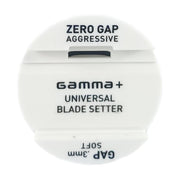 Dual ended universal blade setter to ensure blade is perfectly aligned. Agressive side is configured with minimal gap setting for the sharpest lines. Soft side sets the blade to a gentler factory setting of 0.3mm for softer trimming.